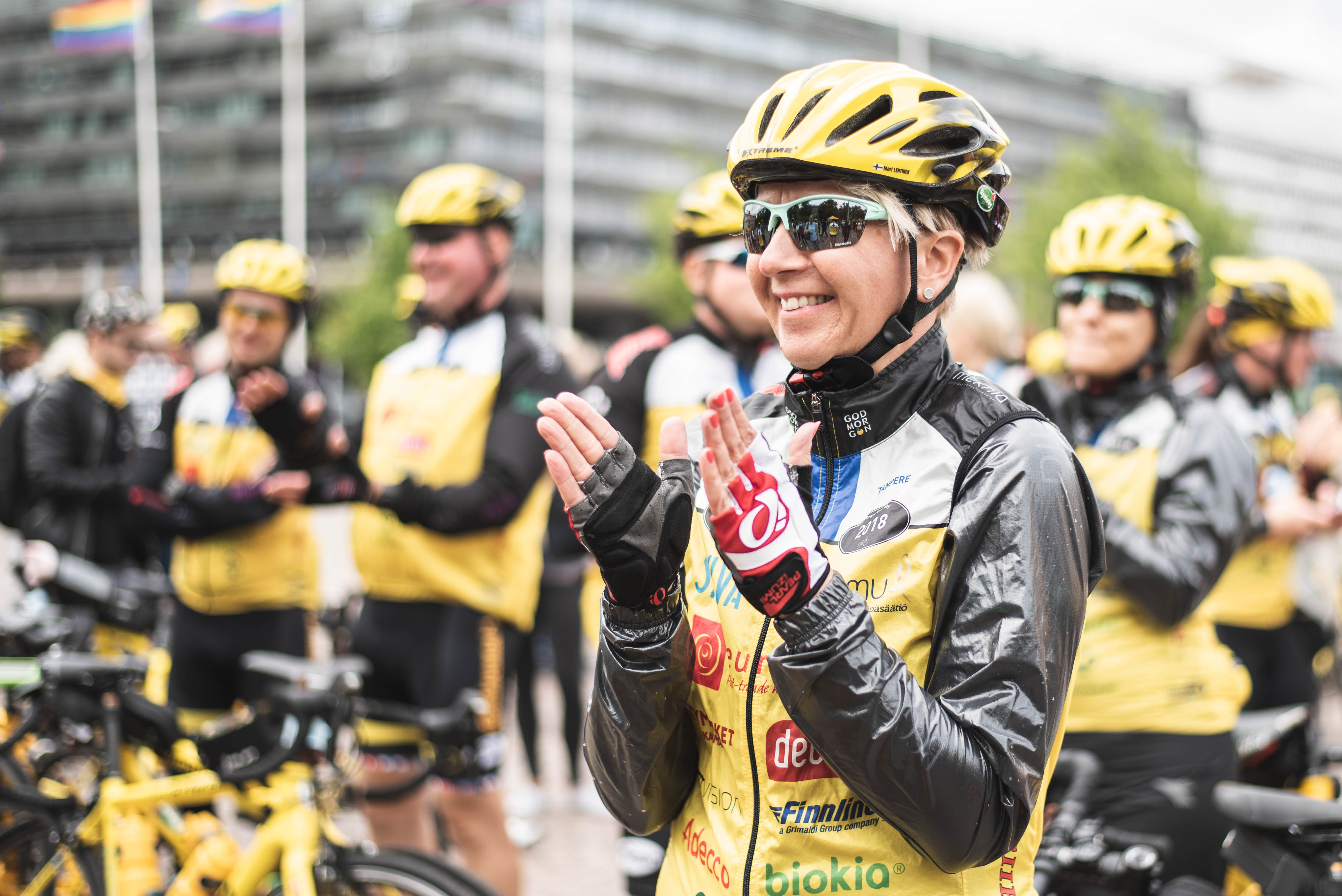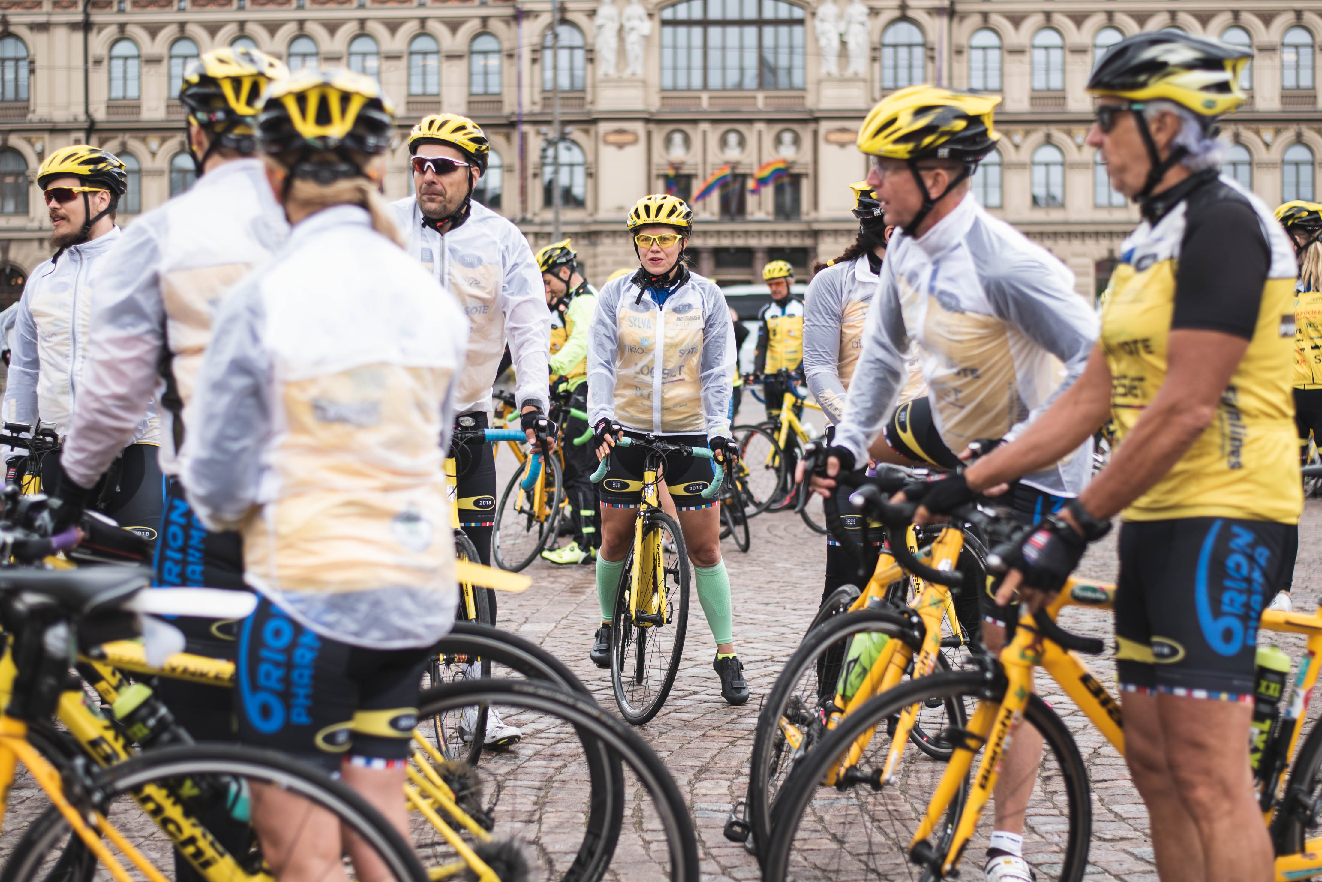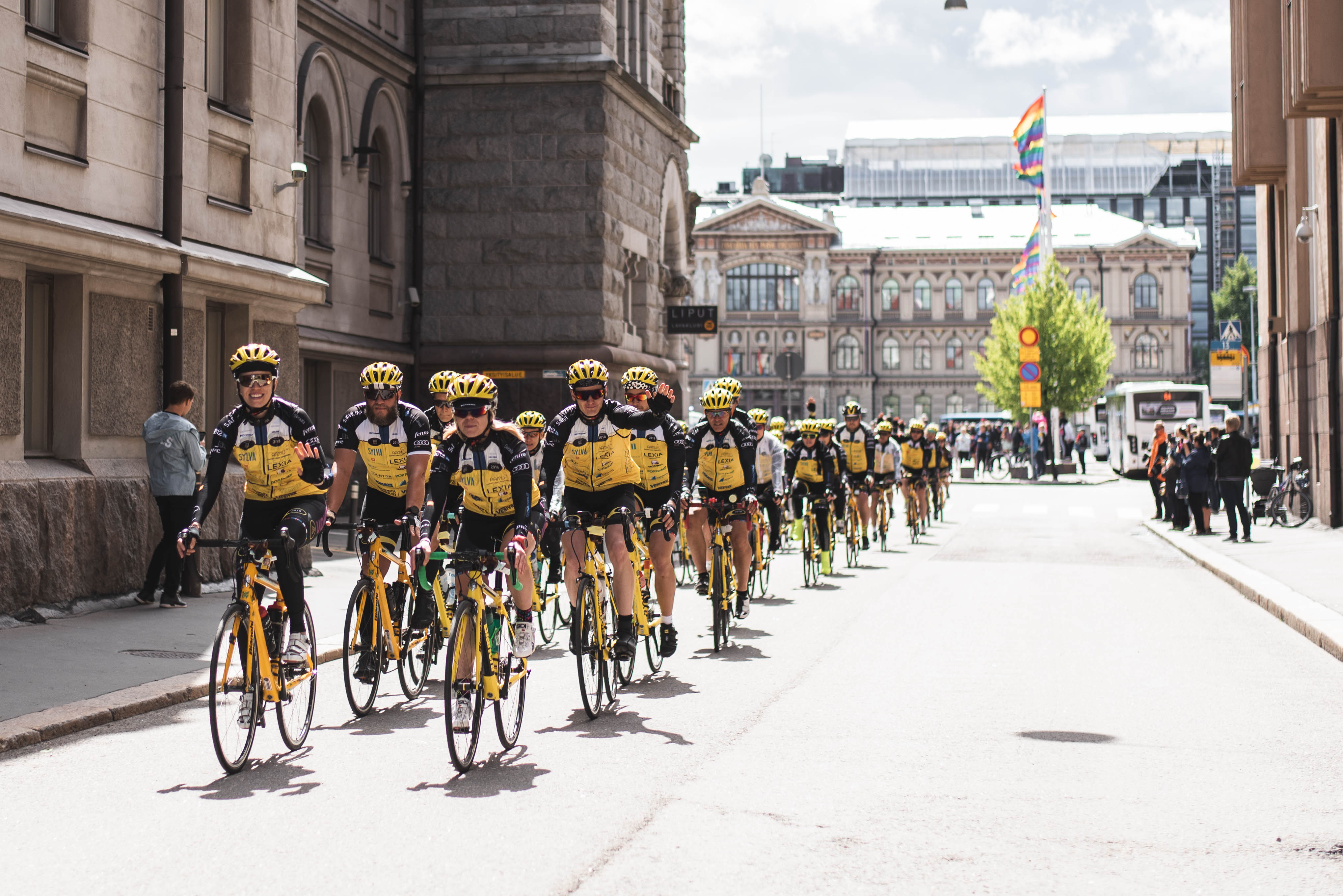Team Rynkeby -hyväntekeväisyyspyöräilyn lähtö Rautatieasemalta 2018. Suomen tiimit kokoontuivat ja aloittivat matkansa kohti määränpäätään Pariisia.