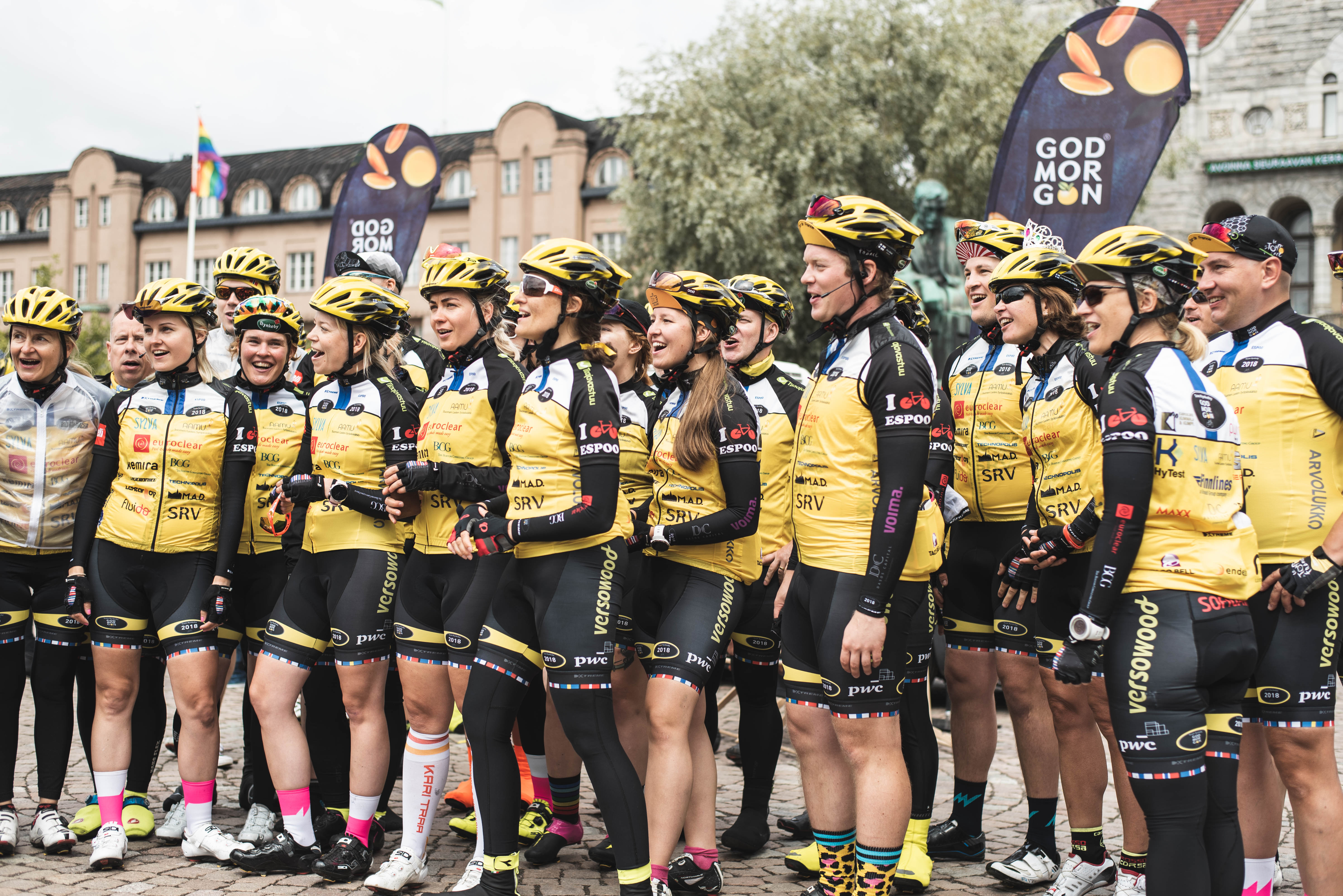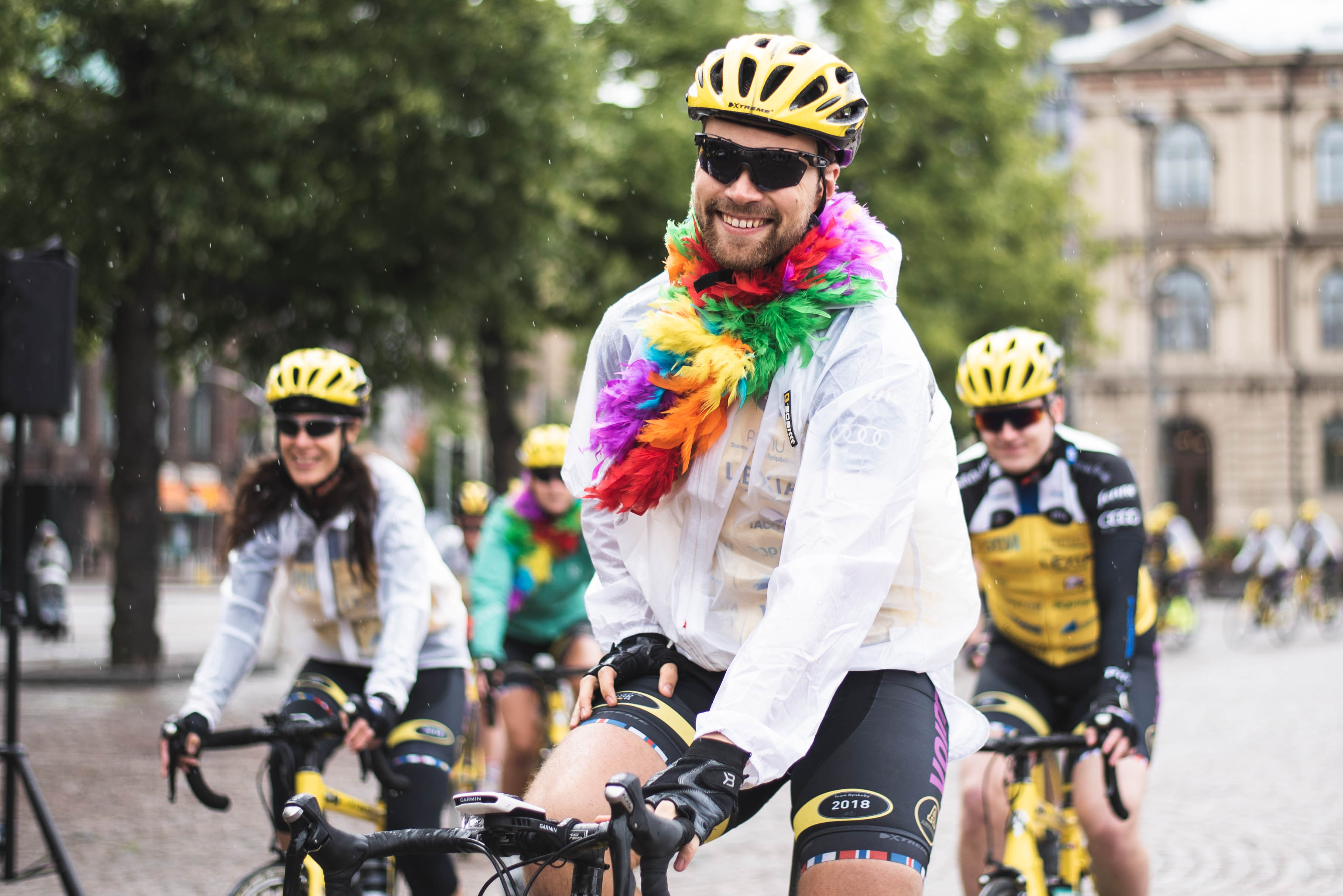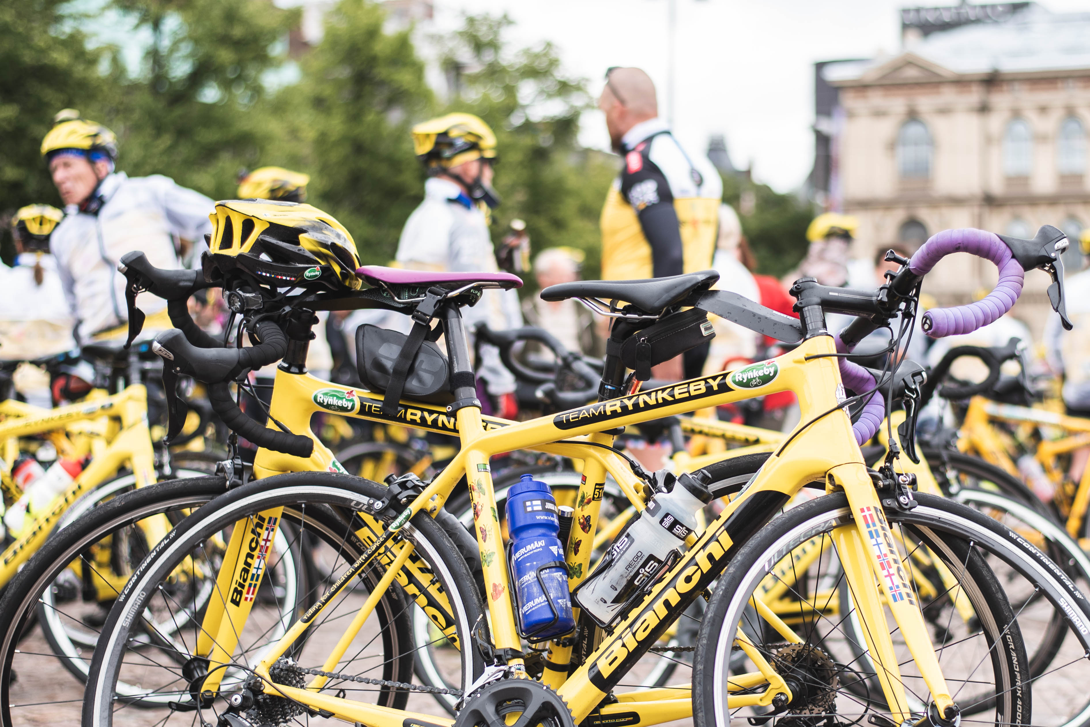 Team Rynkeby -hyväntekeväisyyspyöräilyn lähtö Rautatieasemalta 2018. Suomen tiimit kokoontuivat ja aloittivat matkansa kohti määränpäätään Pariisia.